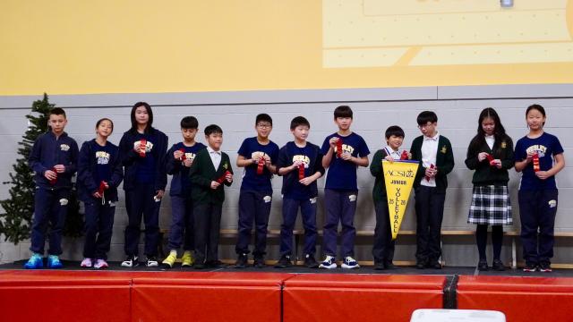The Senior Girls Team were the next to ascend the stage for their ribbons. They too, placed first in their tournament. The Encourager Award was given to a Grade 8 student who was absent today.
