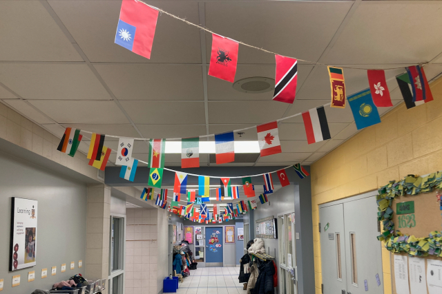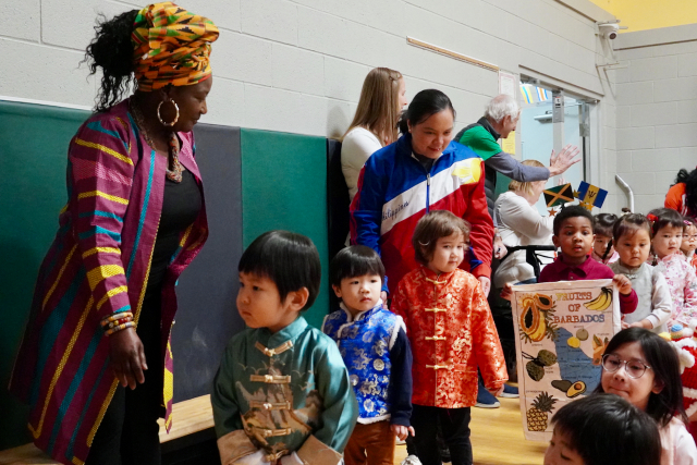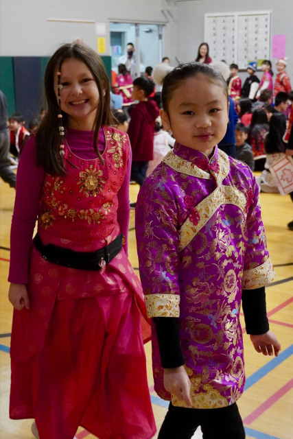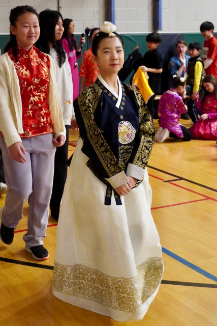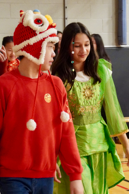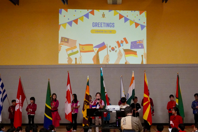 To end the assembly, the ELC classes were invited to kick off the “Parade of Nations”. Each of the classes walked around the gym to show their cultural attire and be part of the parade. Once the last group of ELC students exited, the Grade 1 students continued the parade and each subsequent elementary grade followed until everyone exited the gym to begin their academic day.