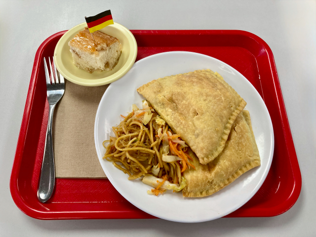 At lunch time, students and teachers had another opportunity to enjoy one final Cultural Day activity – a special meal! Our wonderful kitchen staff prepared Filipino noodles with vegetables and German style apple cake for dessert. They also served Jamaican patties from Allan’s Pastry Shop!