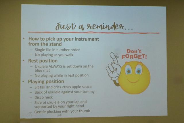 Grade 3 is an exciting year in Wesley’s music program. Each year, our students enthusiastically anticipate learning ukulele. This year was certainly no exception. We start off learning the parts of our new instrument and then how to hold the ukulele with one hand to play (which is not as easy as it looks!). Students are introduced to the open strings and start off right away reading simple melodies on the staff using their first four notes.