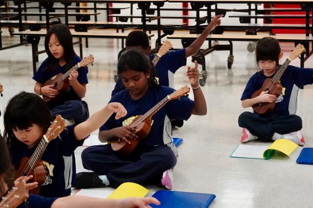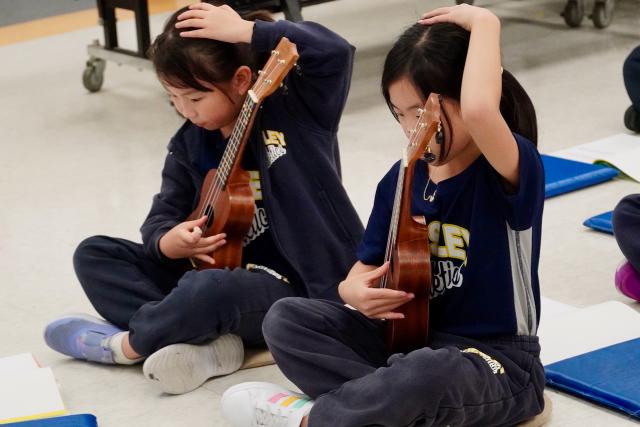 Throughout the year, students will build on their music skills by learning and applying new dotted rhythms to their playing as well as learning how to play the pentatonic scale and C Major scale on their instrument. Just for fun, we will explore some chords as well! Later in the year, students will have the opportunity to join the Ukulele Ensemble and are showcased at our end of year Spring Concert.