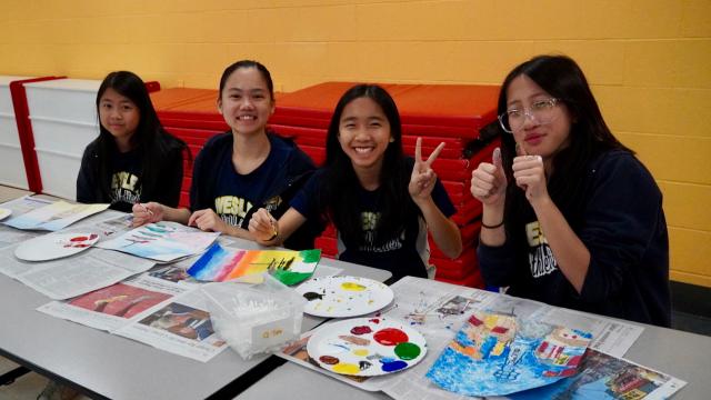 The art program at Wesley for grade 7 and 8 students is based upon an exploration of art history, allowing students to examine how art has developed through time. They begin each new time period with an introduction to its key artists, art characteristics, and other important cultural facts of the time. They view and analyze pieces of art produced in that time period, examining how various techniques, styles, and approaches to art change throughout history. Students then create a piece of art based on what they have learned, using the specific styles and techniques that have been discussed.