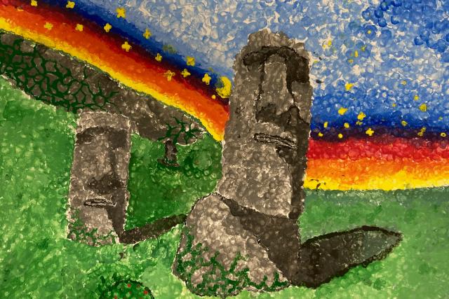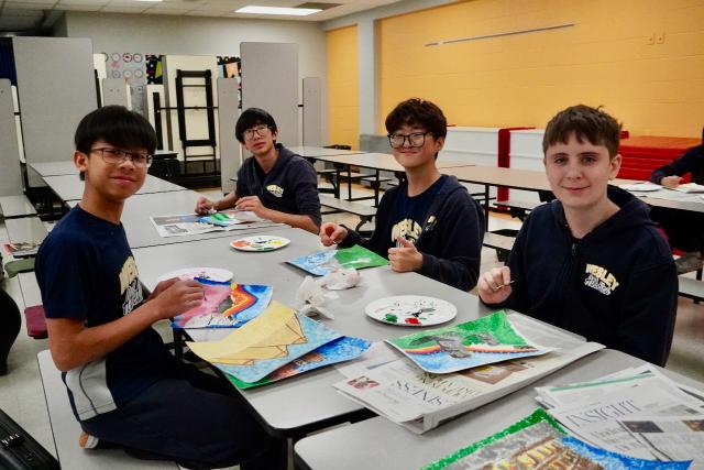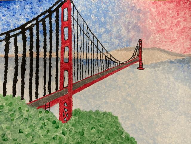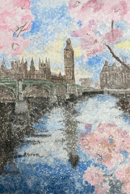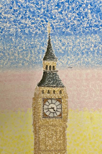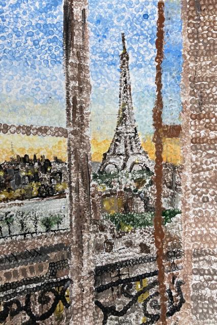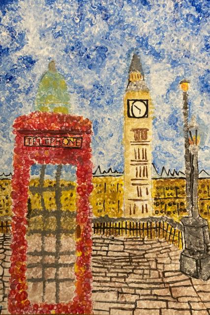 Each student was asked to bring in an image of a landmark that they would recreate as an Impressionist painting. Students completed a graphite transfer and then used paint and the pointillism technique to complete their painting. They learned how much thought had to go into choosing and blending colours, how to show the small detail in their paintings, and just how much focus and time it takes!