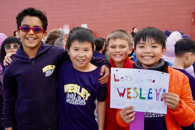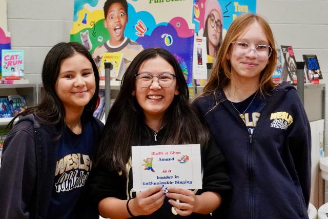 At 3:00 PM, students gathered in the gym for an assembly. There was a Wesley Wildfire senior and junior team update. Ribbons were handed out as well as the Encourager Awards for both teams.