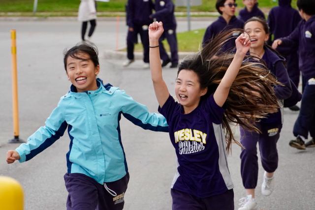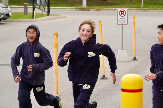 After lunch, the elementary students held their event. With great enthusiasm and excitement, Mrs. Ma rallied the students. She explained the safety rules and encouraged everyone to have fun. Ms. Romeo also mentioned that teachers would be watching to keep track of who would win various “walk-a-thon leadership” prizes. The Grade 3-8 students walked or ran along the outside perimeter of the playground while the Grade 1-2 students stayed inside the fenced area. Some students ran while others walked. Many did these activities in groups and in creative ways to make it fun! There were groups singing, doing cart wheels, marching as if they were in their air cadets unit, walking arm-in-arm, and running of course!