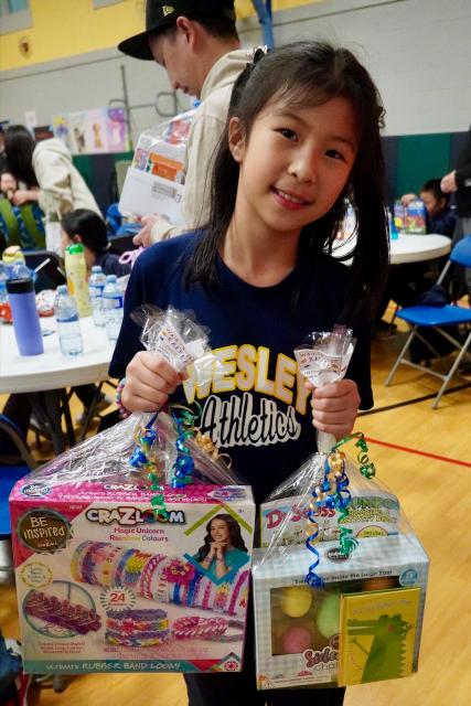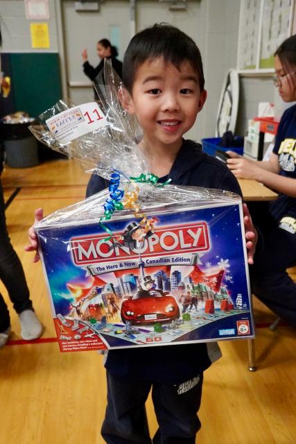 After the sports update, Mrs. Ma congratulated the students for all their hard work in fundraising and in running/ walking today. Certificates were given to students who were identified as having demonstrated various leadership qualities during the walk-a-thon. Awards were given for the best energy, manners, sportsmanship, kindness, smiles, movement in creative ways, singing, etc. Mrs. Ma also shared the subtotal amount that has been raised so far – $44, 760.35 – excluding the money from tonight’s raffle and other pledges that are still slowly trickling in. Two classes had 100% participation – Grade 5B and Grade 8A!. Congratulations to the Grade 1A class for raising the highest amount per student in the class! Next, Ms. Romeo drew names for a special draw. For every $50 that a student raised, their name was entered once in the bucket. There were sixteen different winners for the elementary division. There will also be an ELC draw too.