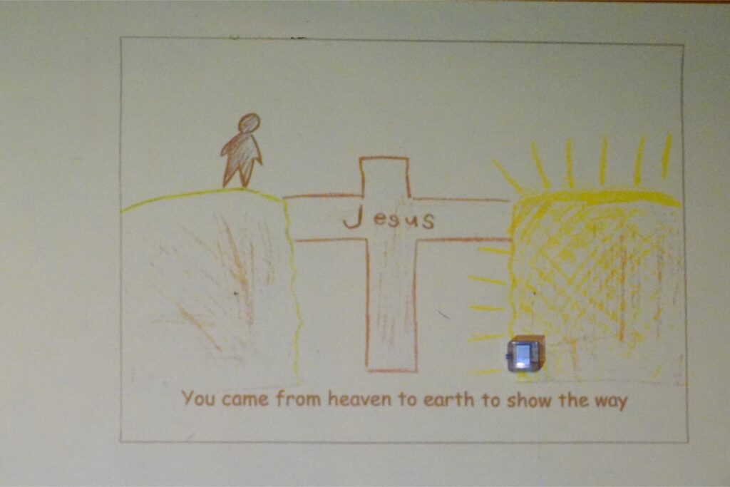 To transition the SK1 class off the stage following their action packed song, the audience was invited to rise and sing “Lord I Lift Your Name on High”. As the lyrics appeared on the screen, they were accompanied by beautifully drawn and coloured pictures that reflected the words to the song. Meanwhile, the students returned to their seats to put on their graduation caps and prepared for the diploma ceremony.