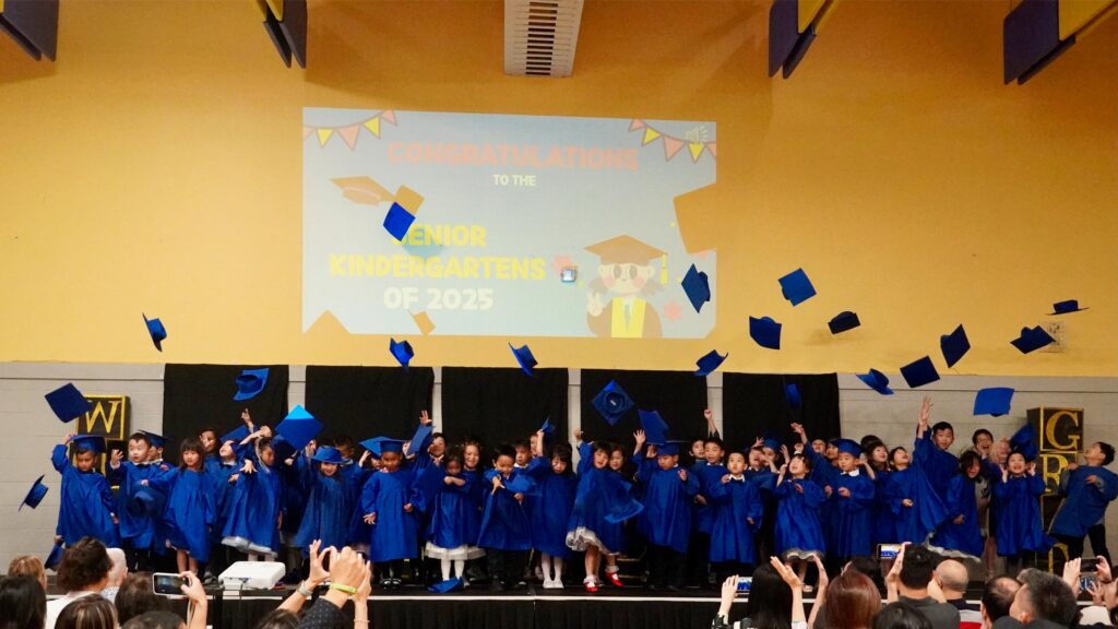 Wesley Principal, Mrs. Serio, then said a few closing remarks and prayed for the graduates before they tossed their caps to mark the end of their SK journey and their next steps to Grade 1 !