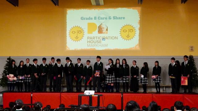 This week, the Grade 8 students played a large role in the service. Representatives announced that their Care & Share will be to support Participation House. This is where more than 115 adults living with disabilities in York Region call home. Their mission is to “be leaders in improving the quality of life for people with disabilities” and to “offer a range of serviced focused on individual needs, community involvement, and respect for human dignity.” This charity has served those who need their services in our community for over 50 years. Participation House has three group homes and four assisted living locations in Markham. It also offers adult day service programs which gives both residents and those with the Markham community living with disabilities a chance to enhance their quality of life through diverse experiences. Care and Share will take place on Monday, December 15th. Donations will help our grade 8 students bless the residents of the Butternut Lane Residence, located near the Markham Stouffville Hospital.
