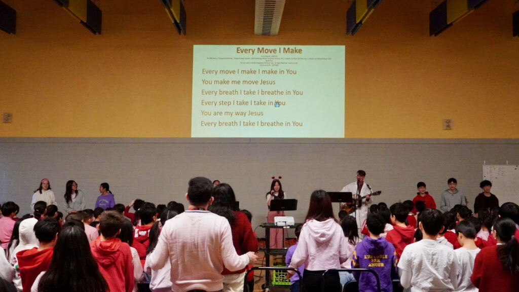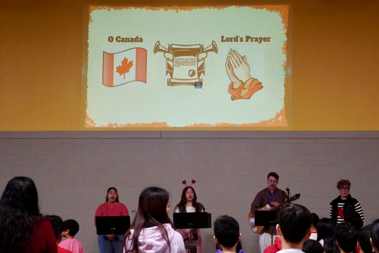 This morning, our elementary chapel service was led by the Chapel teachers. After singing O Canada, saying the Lord’s Prayer and listening to the Land Acknowledgement, the teachers led a time of musical worship with “Shine on Me“. This is a song inviting Jesus to shine on us and to help us be a light for Him.