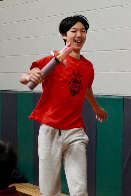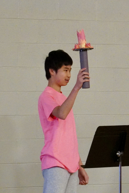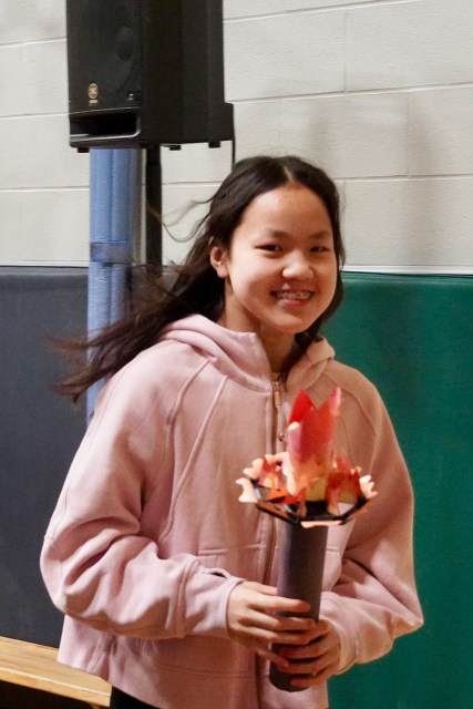 Next week, we will be having our second House Team Day of the year. Several Grade 8 students and Mrs. Bolton helped generate some enthusiasm for the big day that will take place on February 18th. As it will centre around the Winter Olympics theme, the Grade 8’s performed a mini torch relay to the front of the gym. Mrs. Bolton explained that everyone will be competing/ enjoying activities in mini-teams and rotating between stations. There will also be a House Team point announcement to see who will be receiving the Gold, Silver and Bronze medals at this point in the year.