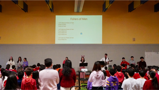 The Chapel Teachers and some Grade 8 volunteers then led the audience in singing “Fishers of Men” – a traditional children’s song about to grow in Christ so that we can share our faith with others.