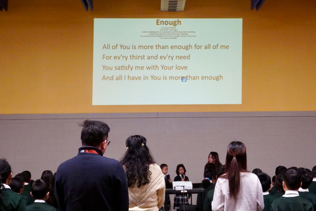 To respond to the message, Chapel Team 2 led the singing of “Enough” – a song that shares how God’s love is sufficient for us.