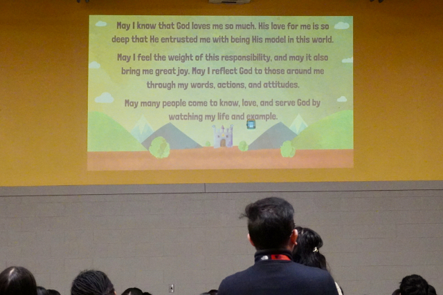 Students and teachers then recited the benediction together to close the service and depart the gym to start their academic day.