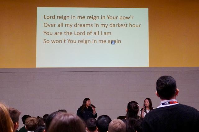 This morning, we held our first chapel service of the new school year. Mrs. Vant Erve led the singing of O Canada and the recitation of the Lord’s Prayer. This was followed by the Land Acknowledgement. After a few words of welcome and reminders for the new school year, the teachers led the singing of two worship songs, “Lord Reign in Me” and “Build Your Kingdom Here”.