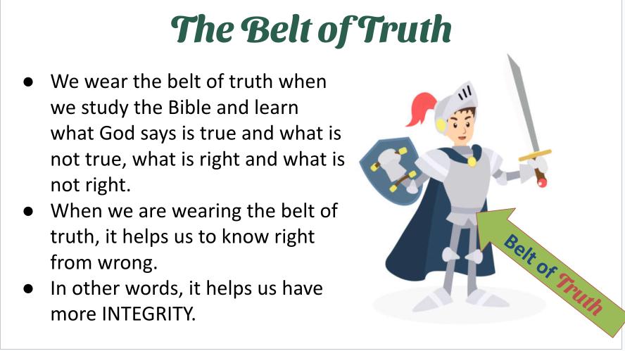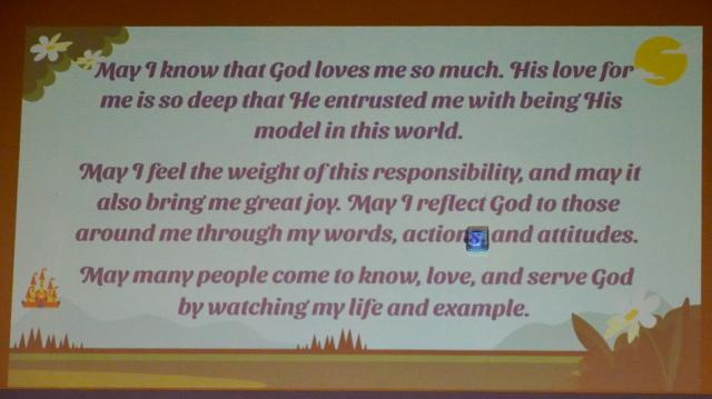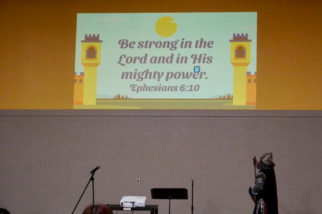 After the explanation, Sir Learns-a-lot asked the audience to read Ephesians 6:10-18 with her to provide context for the need to wear the Armour of God. She then ended the service by praying for the students and leading the reading of our aspirational passage.