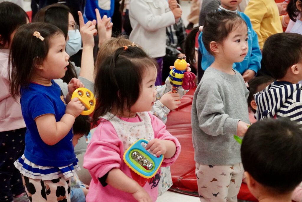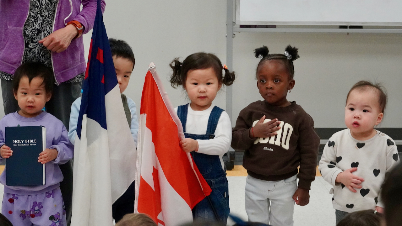The Toddler 1 class led this morning’s ELC chapel. After the pledges, O Canada and The Lord’s Prayer, Miss Atkins led a time of musical worship with two songs – “Arky Arky” and “He’s Able”. Many of the toddlers were given musical instruments and danced along to both songs!