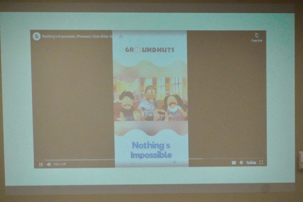 Next, Mrs. Michelle introduced the Bible verse of the day, “For nothing will be impossible with God” Luke 1:37. She explained that sometimes, things may seem difficult but we need to keep trying and ask for help. That can be help from God or others that he provides. Since they had just sung a song about Noah’s Ark, she asked the children whether they thought building the ark was a difficult task. Many students nodded or shouted out “Yes!”. She then asked the students for some examples of difficult things that they have done or are doing. Mrs. Michelle shared her own personal challenges when she had to get her drivers license. It took 4 tries and God’s grace to help her pass! Then, she shared a short video/ song about how nothing is impossible with God.
